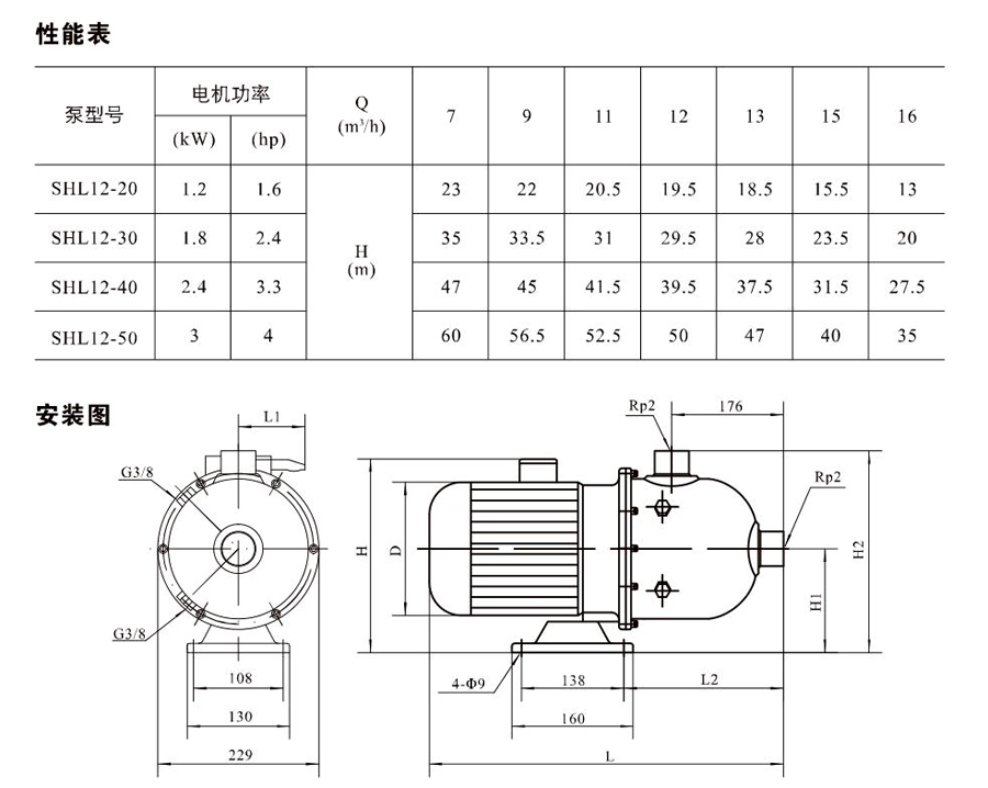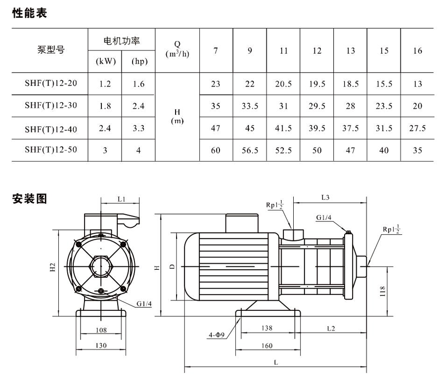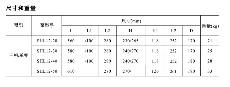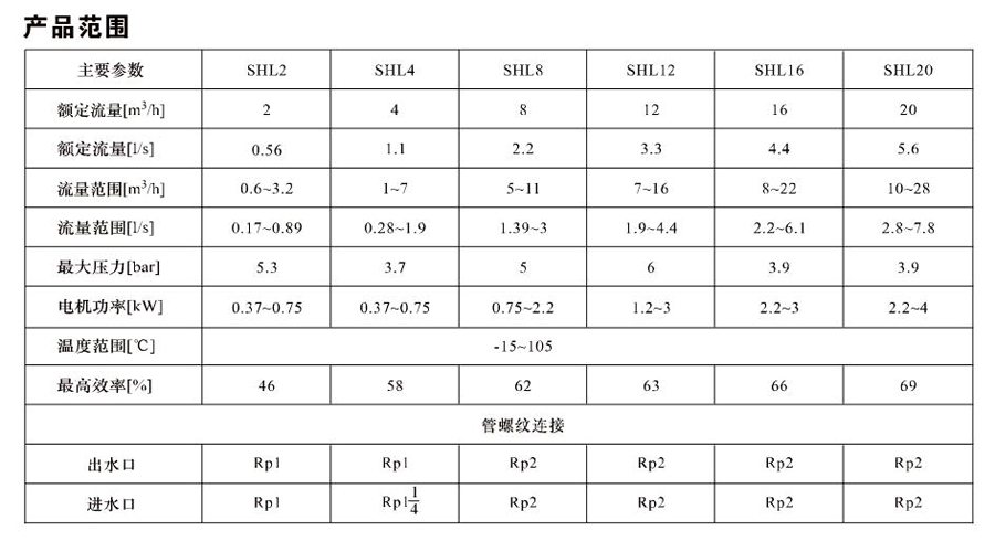 SHL/SHF/SHFT12為臥式多級非自吸多級離心泵,配加長軸電機。緊湊式結(jié)構(gòu)使泵尺寸很小,軸向入口或徑向出口。